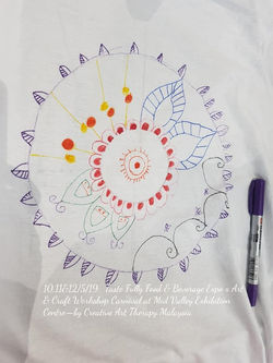 Special thanks to Main Campus for inviting us for the art therapy workshop at the Tastefully Art & Craft Carnival in conjunction with the Mother's Day. We wish more public get to know more about Zentangle & Mandala art approach. They had created awesome Zendala T-shirt, Beautiful Blossom Bottle, Avengers Plastic Folder & Styrofoam Art 'N' Craft. We draw freely without the use of eraser.